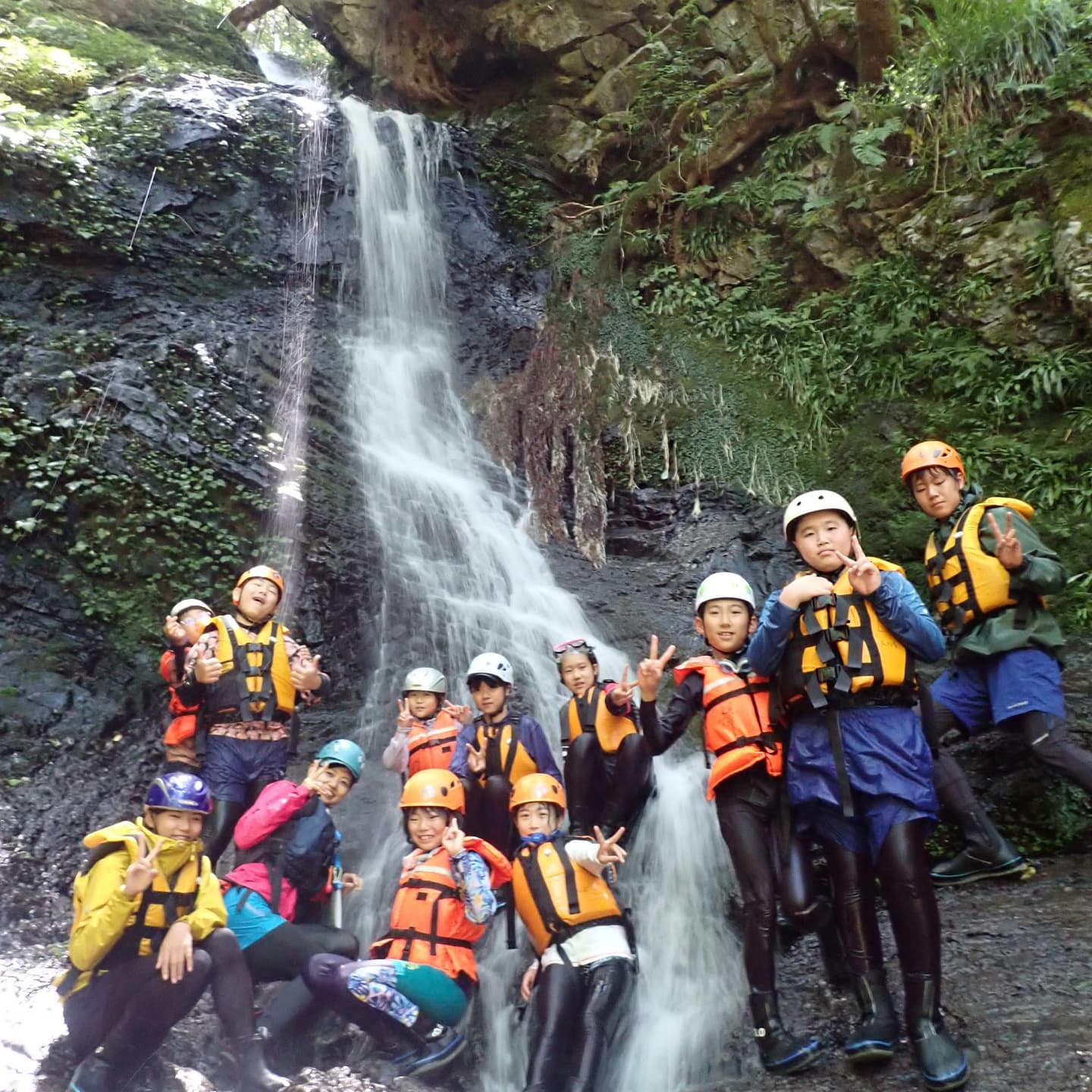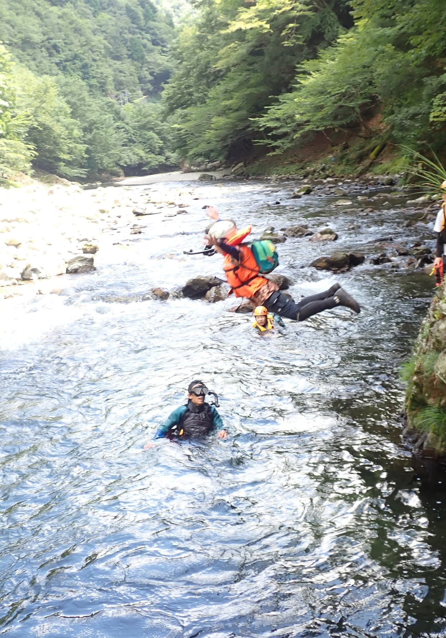 滝を登る 川に飛び込む