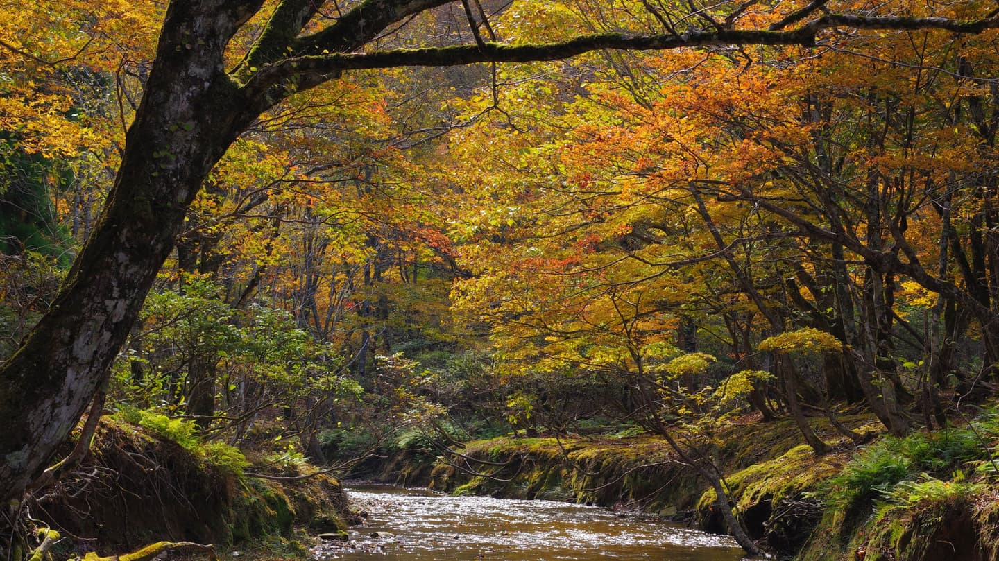 原生林を象徴するトチやブナの巨木が生きる美しい谷景色のなかを、パシャパシャと川を渡渉しながらめぐり歩き、由良川の最初の一滴となる源頭を尋ねます。最後は、福井県との県境に至る急坂を登り切り、日本海を望む杉尾峠がゴールです。初めての方にオススメしたいのはもちろん、何度歩いても季節ごとに違う森を楽しむことができる、魅力が詰まったコースです。渡渉は30回以上あるため、長靴が必要です。